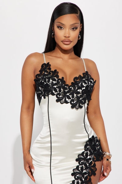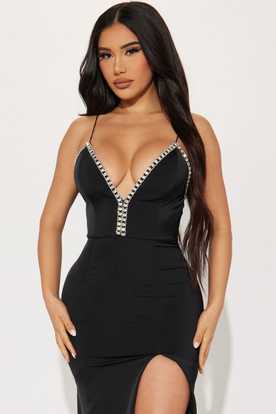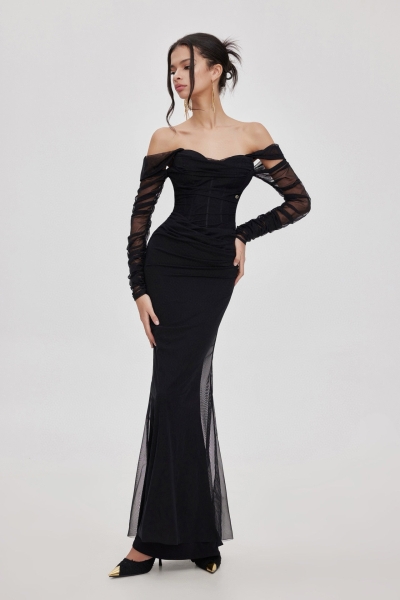 SHEERLUCK Nude & Black Fishtail maxi dress