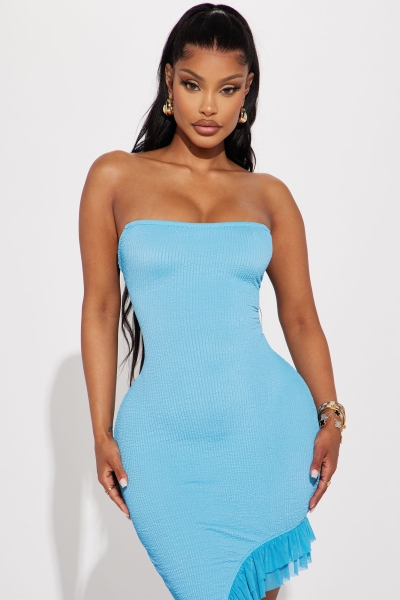SHEERLUCK BLUE& PINK& BROWN LACE TOP MINI DRESS