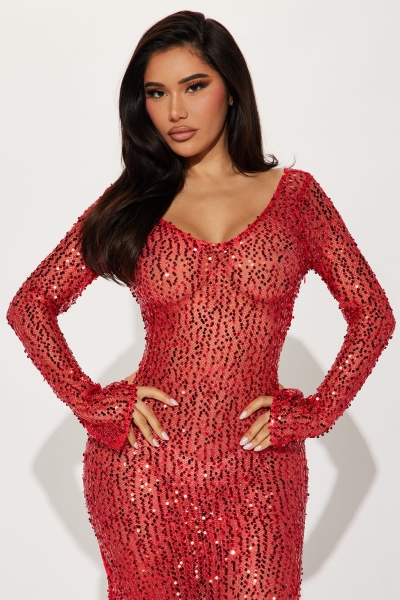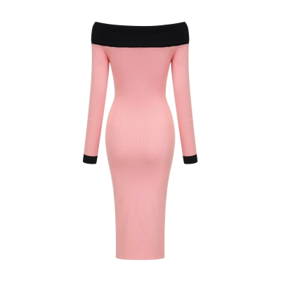 SHEERLUCK Pink & brown & Red Fishbone Mesh Sheath mini Dress