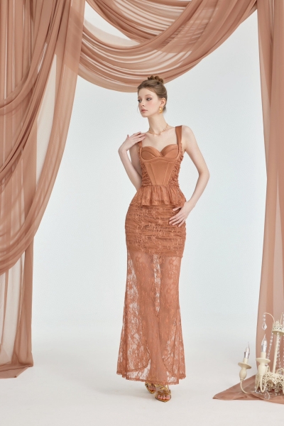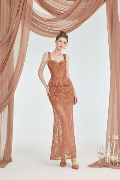 SHEER LUCK BROWN& PINK LACE TOP MAXI SKIRT